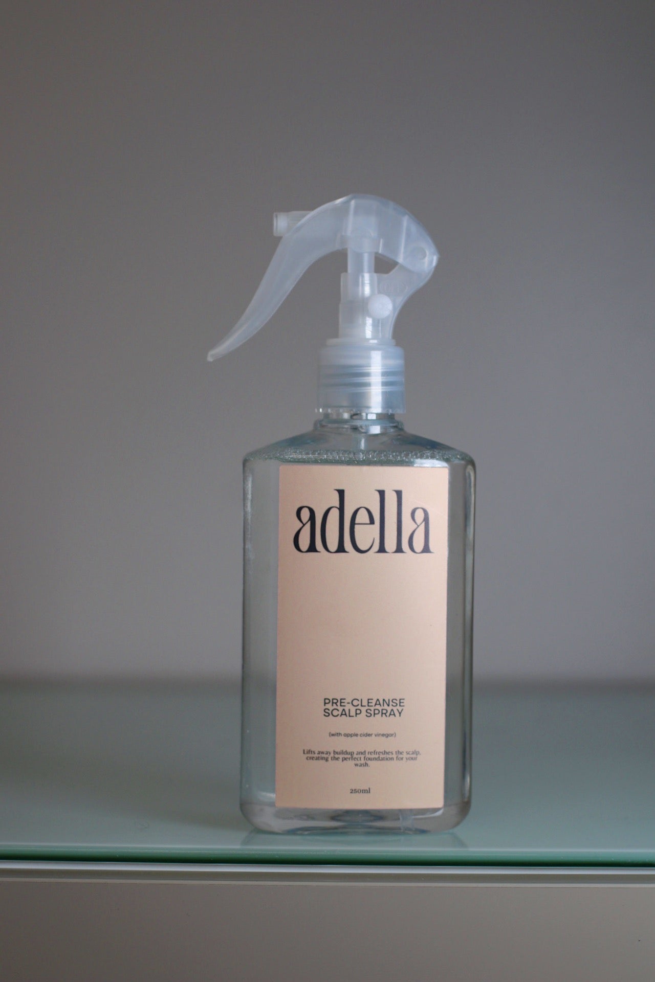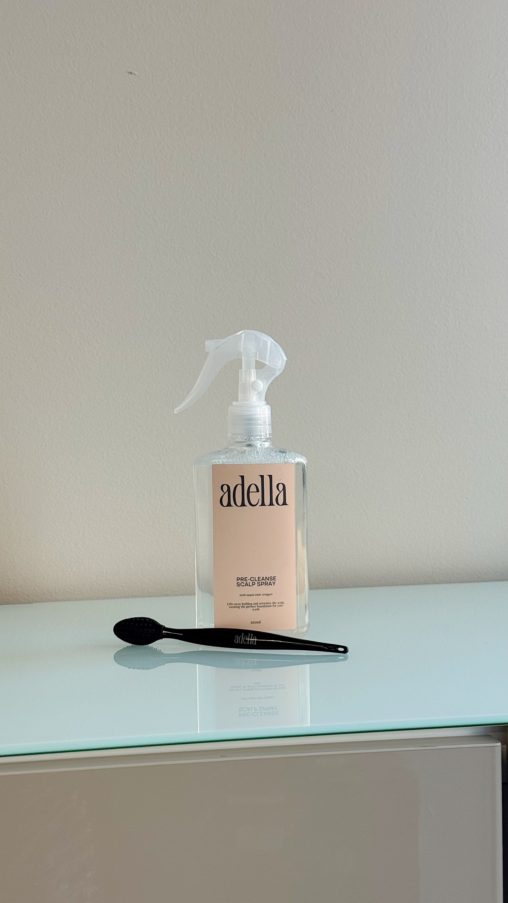 Before shampooing, shake well and section hair. Spray directly onto the scalp, gently massage or use the Adella Exfoliating Brush, then rinse. Follow with your Adella wash day routine for best results.